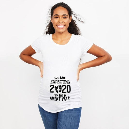 Women T-Shirts Slim Maternity Funny Letter Tops O-Neck Pregnancy Women