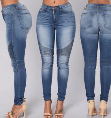 Women's stretch Slim folds stitching feet jeans pencil pants