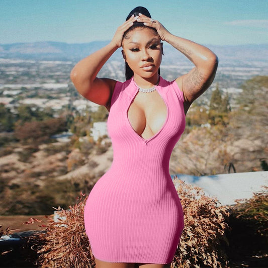 Women's High Neck Hollow Wrapped Breastless Back Mid Waist Pack Hip Dress