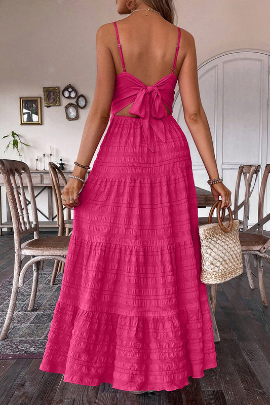 Rose Red Bow Tie Sleeveless V Neck Maxi Dress