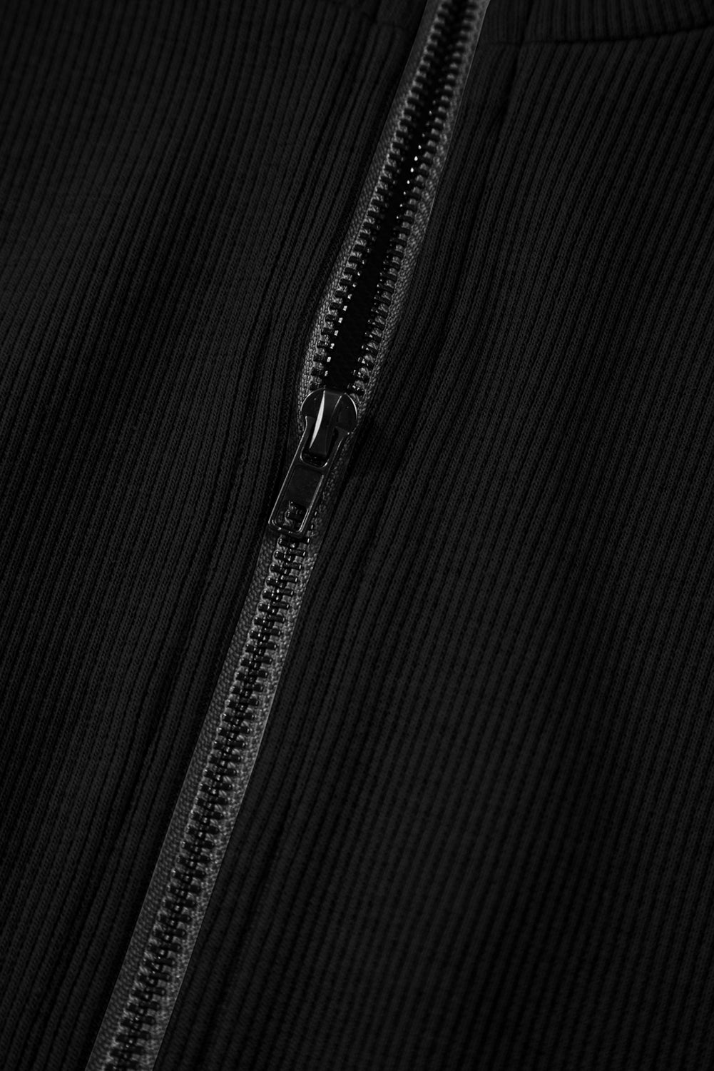 Black French Terry Zipped Collar Sleeveless Drawstring Waist Mini Dress